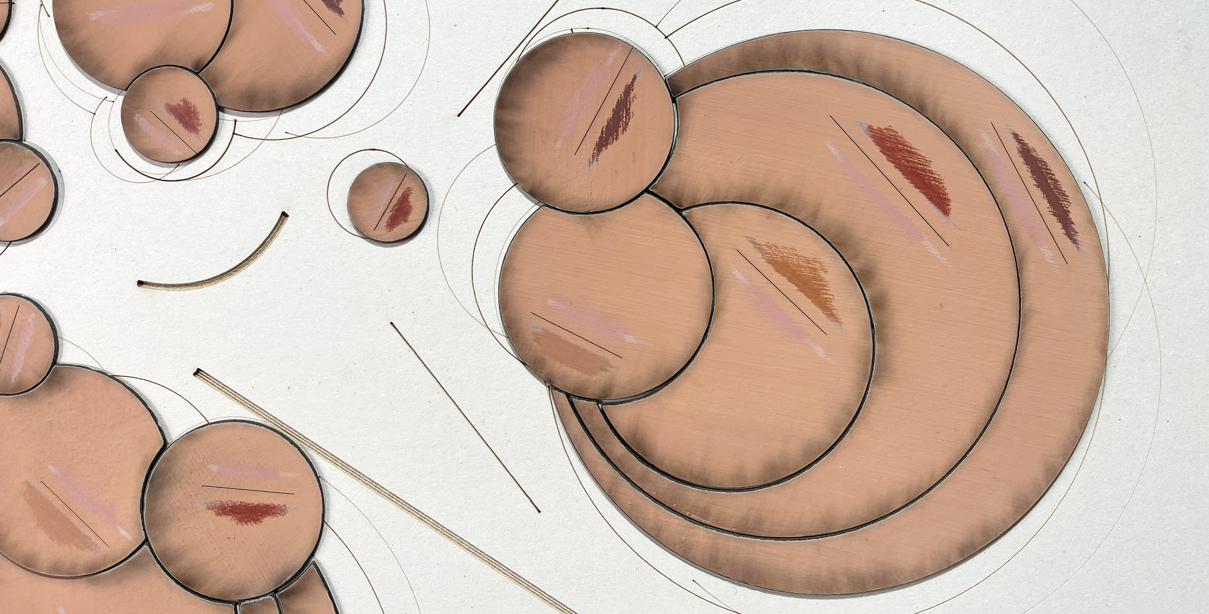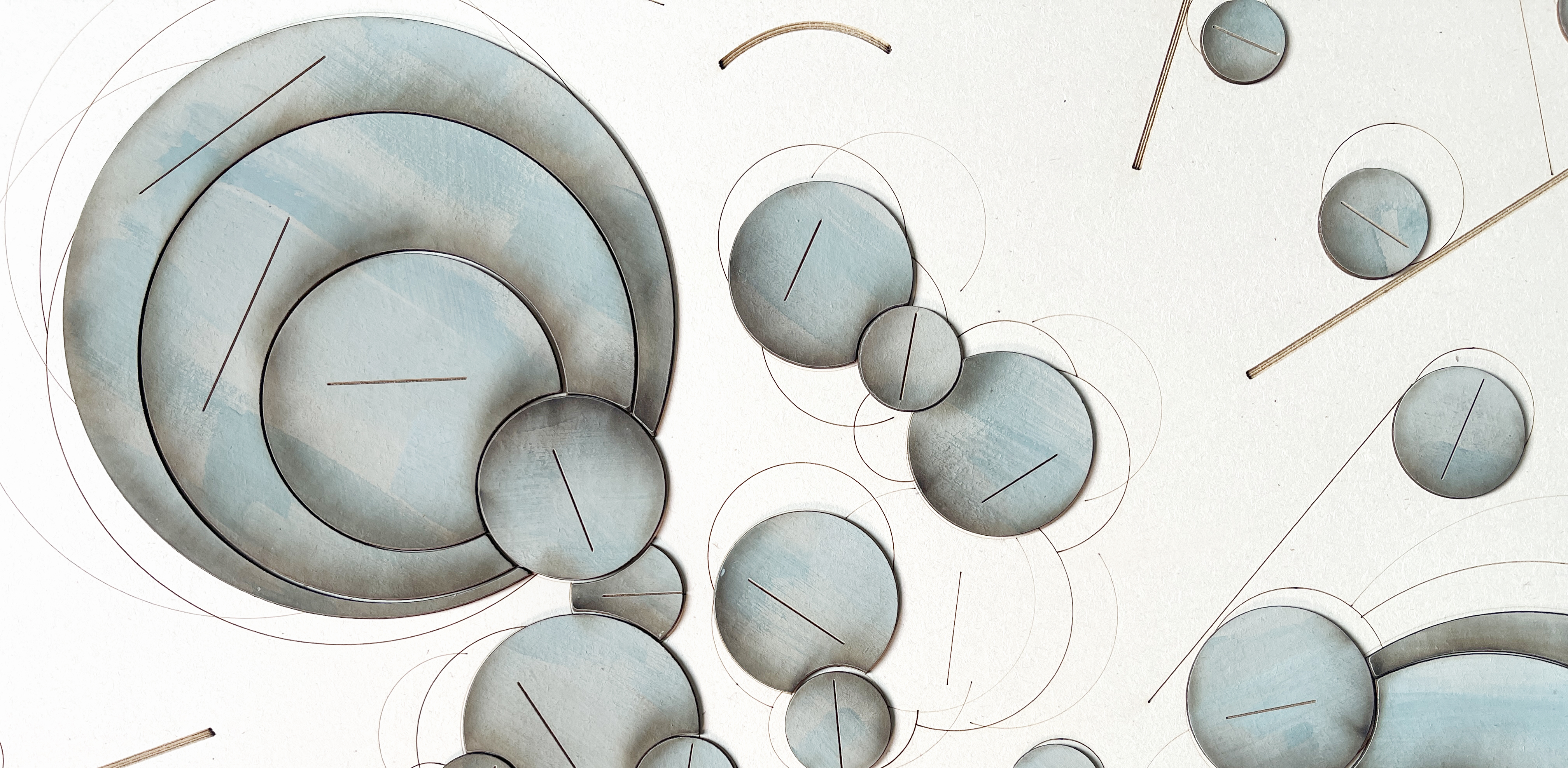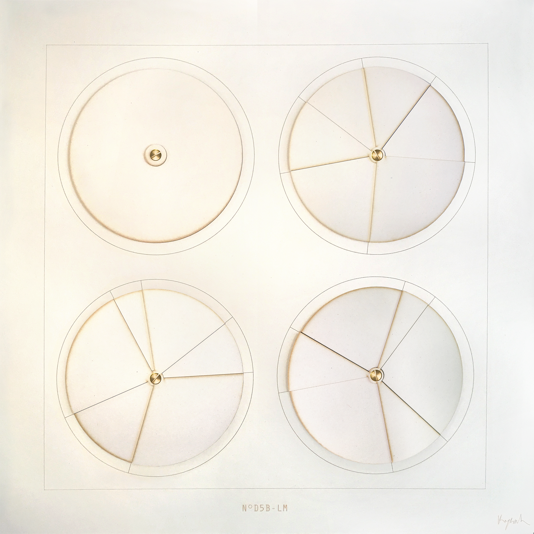 Each series originates from a shared geometric structure, unfolding through variations of rhythm, colour and material presence.