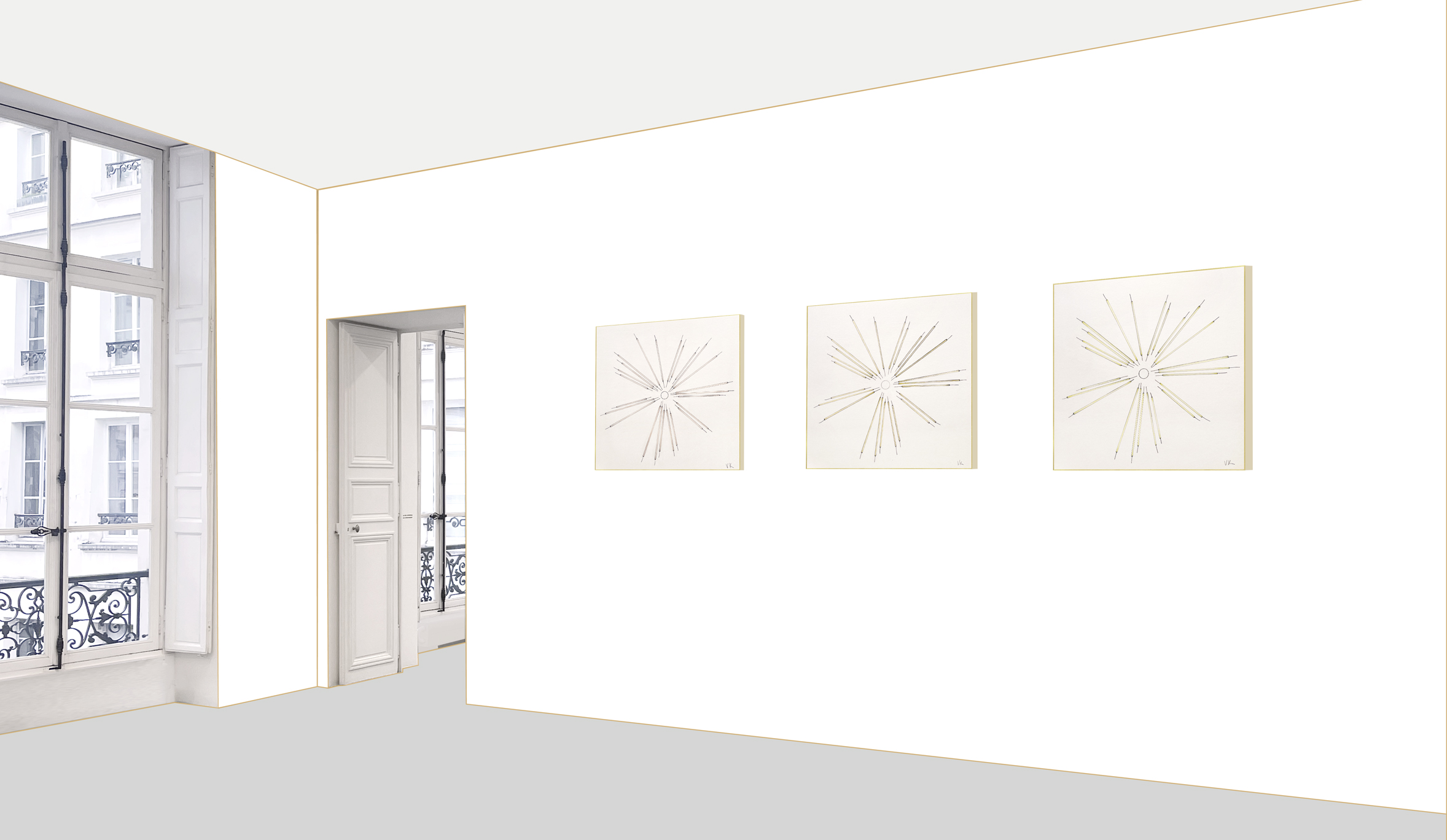 Diptychs and triptychs echo ancient bas-reliefs and symbolic traditions, where geometry becomes a language of forces and balance. The constellation of the works articulates primordial forces, polarity and synchronicity that shape matter and perception.