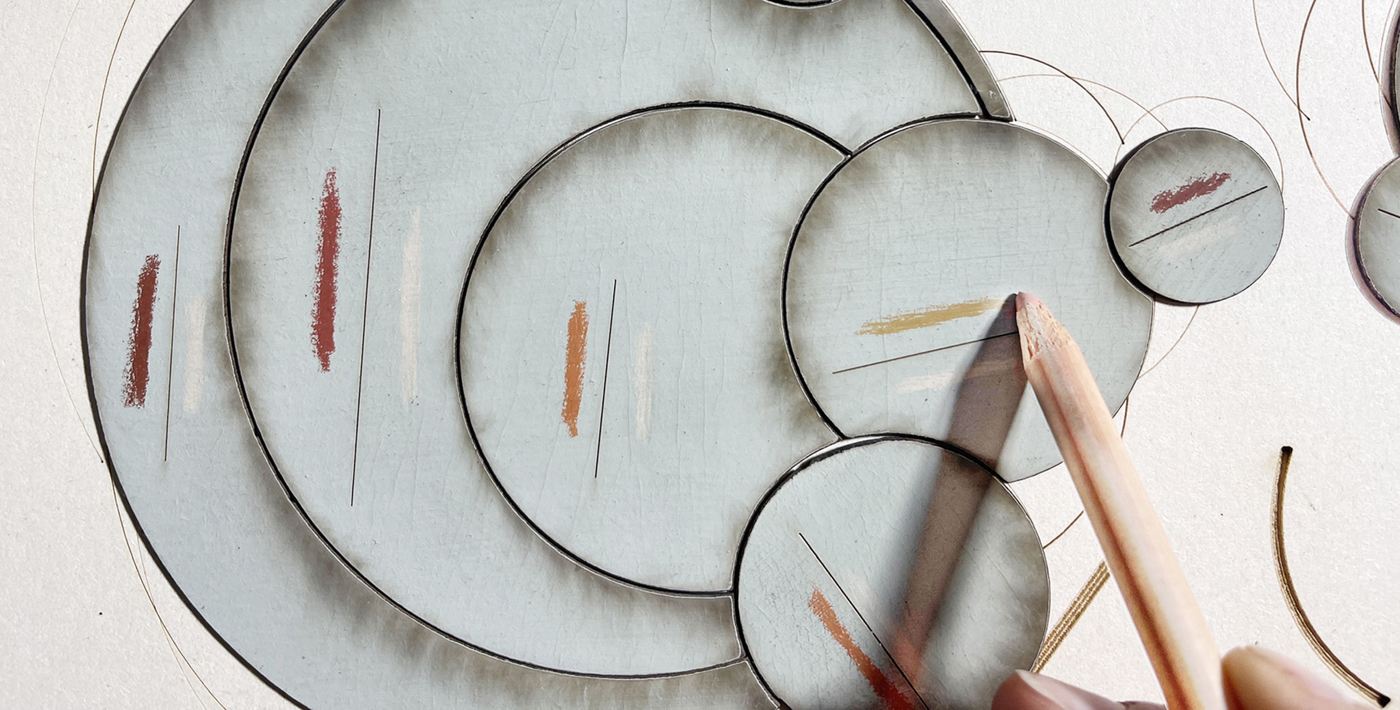 Each series originates from a shared geometric structure, unfolding through variations of rhythm, colour and material presence.